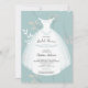 Modern bride bridal shower invitation featuring a beautiful white bridal gown set on a blue green background. Flip our chic & stylish bride dress shower invitation over to view a matching watercolor floral back for an extra special touch. Contemporary bridal shower invite for a spring bridal shower, summer bridal shower, fall bridal shower or winter bridal shower. Visit our shop to view this popular bride design in a variety of colours.