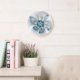 Floral Elegance Modern Abstract Blue Fractal Art Large Clock