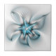 Floral Elegance Modern Abstract Blue Fractal Art Tile