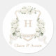 Floral Elegant White Hydrangea Crest Envelope Classic Round Sticker