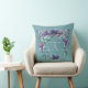 A lovely personal pillow for someone's special place with a magnificent ethereal blue and purple hydrangea blossom wreath crowned with a floral medallion, over a tealish or blue-sage slightly ombre print background.