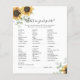 Floral Eucalyptus Sunflower Bridal Shower Game