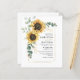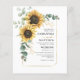 Create a modern Sunflower Floral Wedding invitation card with this cute template featuring beautiful rustic floral bouquet, geometric gold effect frame, with modern simple typography.