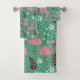 Floral flamingo seamless pattern pink green bath towel set