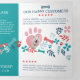 We've designed this beautiful pet-themed tri-fold brochure. The brochure features our beautiful floral and foliage pet pattern and paw print photo frames for you to add your own images. The pattern incorporates stylized dog bones, pet paw prints, and floral and foliage elements that are beautifully incorporated into this professional pet theme tri-fold brochure. All of the text and headers are fully customizable to suit your needs. On the back of the brochure, you can add your business map location as well as move the map pointer to pinpoint your location on the map. All illustrations contained in our pet floral and foliage business trifold brochure are hand-drawn original artwork by Moodthology.
