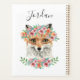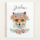 This design features watercolor portrait of a fox wearing a halo of flowers.