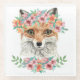 This design features watercolor portrait of a fox wearing a halo of flowers.