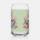 Floral Fox in Basket with Quilt & Flowers Can Glass