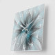 Floral Fractal Modern Abstract Flower Blue Grey Square Wall Clock