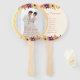 Floral frame couple photo beige wedding program hand fan