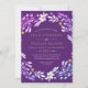Floral frame with gold confetti purple wedding invitation