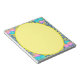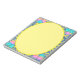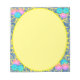 The floral art design on top of the speckled dotted background, makes a decorative oval frame art design for this yellowish green notepad. A nice vibrant change from the ordinary to have for when deciding what to put on a grocery list, taking phone messages, or for anything else you may need to write down.
