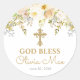 Floral Garden Cream and Gold Baptism Favour Classic Round Sticker