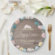 This adorable paper plate features a jumping pink bunny on a rustic wood background surrounded by spring florals/flowers. Personalize it for your needs. You can find matching products at my store.