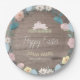 Floral Garden Easter Bunny Eggs Rustic Wood Paper Plate