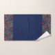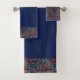 Floral Garden in Reds Border on Dark Blue Bath Towel Set