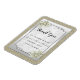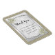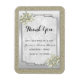 Beautiful classy and sophisticated Wedding Favour Thank You Magnet with a gold glittery glitter background, a stylish silver frame on a silver border with pretty pearl gem decorated flower decorations in the corners all on a white damask background full of swirls and flourishes. A romantic, elegant posh design for your special day. All text is fully customizable to meet your requirements, if you would like help to customise your product or would like matching products, please contact me through my store and i will be very happy to help you.
