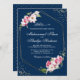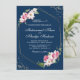 Invite your guests with this elegant wedding invitation featuring beautiful pink flowers with faux gold foil hexagon frame and 'Bismillah' in Arabic calligraphy on a navy blue background. Simply add your event details on this easy-to-use template to make it a one-of-a-kind invitation. Flip the card over to reveal a blue and gold dots pattern on the back of the card.
