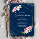 Floral Geometric Frame Navy Blue Quinceanera Invitation