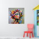 "Floral Geometry" – A Botanical Portrait. An intricate meeting of angular mosaic-like design and lush floral abundance defines this work. The woman’s piercing gaze contrasts with the softness of blossoms, creating a balance between precision and chaos. A vivid palette of pinks, yellows, purples, and reds highlights the connection between the structural and the organic, yielding a modern, unforgettable portrait.