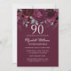 Floral Glitter Burgundy Silver 90th Birthday Invitation