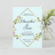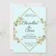 Floral Gold Geometric Minimalist Blue Wedding Invitation