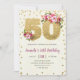 Pink Floral and Gold Glitter Invitation Card for 50th Birthday Party with Glitter Numbers