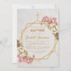 Floral Gold Marble Pink Orchids Geometric Baptism Invitation