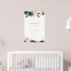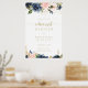 This floral gold rehearsal dinner welcome sign is perfect for a rustic wedding rehearsal. The design features beautiful hand-painted dark blue, blue, navy, pink, blush, gold flowers and green foliage.