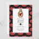 Crimson red gothic bridal shower invitation featuring a witch spell potion bottle and a dramatic rose pattern.