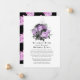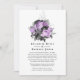 Watercolor floral gothic postponed wedding update invitation in accents of lavender purple, black and faux glitter silver designed to be quickly and easily customized to your event specifics. In these uncertain times, it can happen that you may have to hold a smaller wedding than originally planned. This announcement card will take away the awkwardness and take a load off your mind! You can furthermore provide an option to join you for a virtual ceremony.