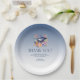This graduation paper plate design features a floral grad hat on a blue to white ombre background with customizable typography. This is the perfect card to serve your guests at your graduation celebration.