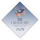 This graduation cap topper design features floral grad hat on a blue to white ombre and customizable text for the name and the year.