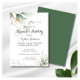 Elegant and modern floral spring summer brunch and bubbly bridal shower invitation features a bouquet of soft pastel watercolor, gold foil and foliage greenery in shades of ivory white, with lush emerald green botanical leaves. Personalize this pretty gold and green garden floral brunch & bubbly invitation with your bridal shower details in elegant lettering accented with handwritten style calligraphy. Beautiful botanical gender neutral design for the bride to be. Green and white flowers are perfect for bridal showers and weddings.