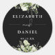 Floral Greenery Black And White Wedding Favour Classic Round Sticker