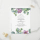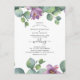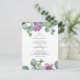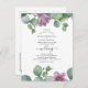 Modern Floral Script Eucalyptus Watercolor Wedding Invitation featuring modern typography, purple and green leaves, and layout.