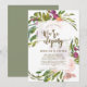 A floral/greenery design invitation with "we're tying the knot/we're eloping" and a co-ordinating reverse side. Easy to edit or delete the available text fields to personalise the information with your own details for a professional and custom finish. Matching items are available in this pretty collection. Please visit my shop to see the full range, including rsvps if required and favour stickers, name cards etc.