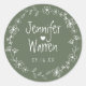 Floral Hand Drawn Wreath Wedding Green Classic Round Sticker