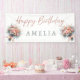Celebrate in style with this elegant floral Happy Birthday banner, featuring soft watercolor flowers and modern script typography that creates a beautiful and welcoming party atmosphere. This personalized birthday banner can be customized with any name, making it perfect for girls birthday parties, kids celebrations, or elegant birthday themes. The delicate floral bouquet design adds a charming decorative touch, ideal for hanging behind the cake table, photo booth, or party entrance. A stunning décor piece for garden birthday parties, floral themed celebrations, and stylish birthday events that will impress guests and make your party unforgettable.