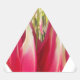 This artwork presents a heart-shaped composition intricately formed by stylized floral elements. The dominant colours include vibrant shades of red and pink, beautifully contrasted against a dark, almost black background that features a subtle gradient fading towards white within the heart itself.
