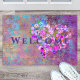 Floral Heart Gold Antique Handwriting Welcome Doormat