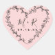 Floral heart wreath with calligraphy initials and modern date in pretty pink heart shape sticker.