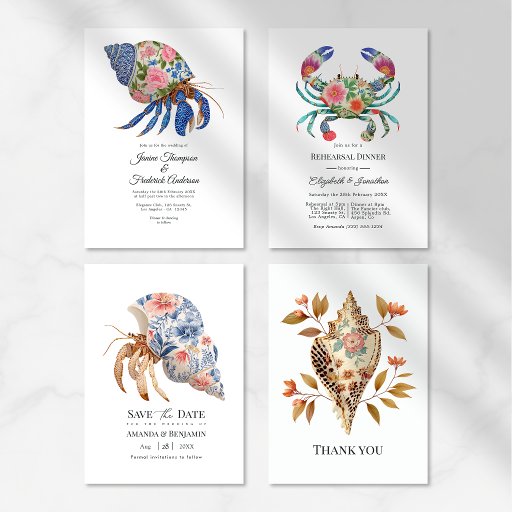 Announce your special day with this elegant Floral Hermit Crab Save the Date Card, featuring a beautifully detailed botanical shell design with soft coastal tones. Perfect for beach weddings, seaside celebrations, and nautical-themed events, this design blends romantic florals with ocean-inspired charm. Fully customisable, it’s a stylish and memorable way to let guests know your wedding date ahead of the formal invitation.
