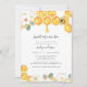 This 'sweet as can bee' baby shower invitation template features sweet honey, watercolor bumble bees, and spring inspired yellow florals. Easily edit all wording on this invitation to better meet your needs.