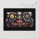Editable vintage gothic floral art from an antique illuminated manuscript, colourful flowers and scrolling leaves on a black background with medieval blackletter fonts.