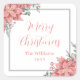 Floral illustration Christmas sticker personalized with the family name and year. Design in pink, green, and grey colours for the Holidays.