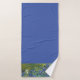 Floral Iris Border on Medium Blue Background Bath Towel Set