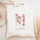 Floral Ivory Rose Gold Monogram Letter M Tote Bag