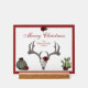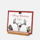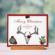Cet élégant panneau de Noël Joyeux présente des illustrations à thème de Noël Occidental dessinées à la main à l'encre noire, montrant un crâne de cerf / tête de renne orné de roses et de cactus. Le texte est modifiable. Personnalisez avec votre nom de famille.
