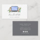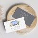 Beautiful design for virtual assistants features a watercolor laptop computer illustration flanked by bouquets of blush pink peony flowers. Customize the front with two lines of text in handwritten script and classic serif lettering, and add your initials or monogram to the blue laptop screen. Add your VA contact information to the reverse side.